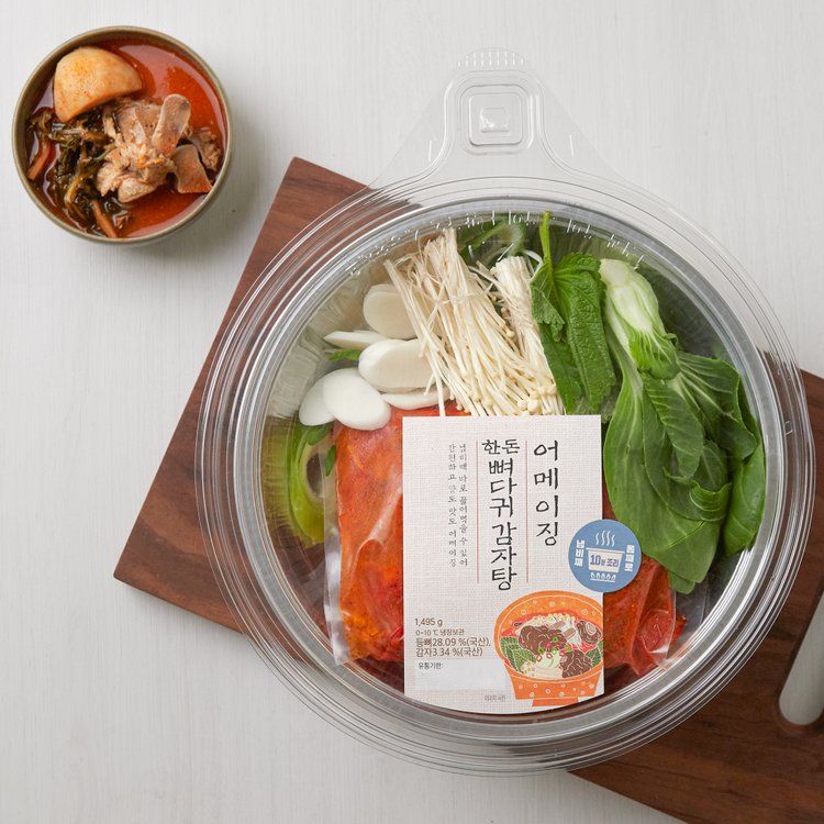 주문한지 이틀만에 총알배송된 포장이 찢어지거나 하지 않고 꼼꼼하고 안전하게 도착했습니다 무엇보다 놀라운 점은 일반적인 감자탕팩과는 전혀 다르게 간단한 조리식품임에도 냉동보관이 아닌 실온 또는 냉장보관입니다! 그래서 제품에 대해 더 신뢰할 수 있었습니다.냉동이 아니라서 얼마나 신선함과 맛에 중점을 두었을까 생각합니다.